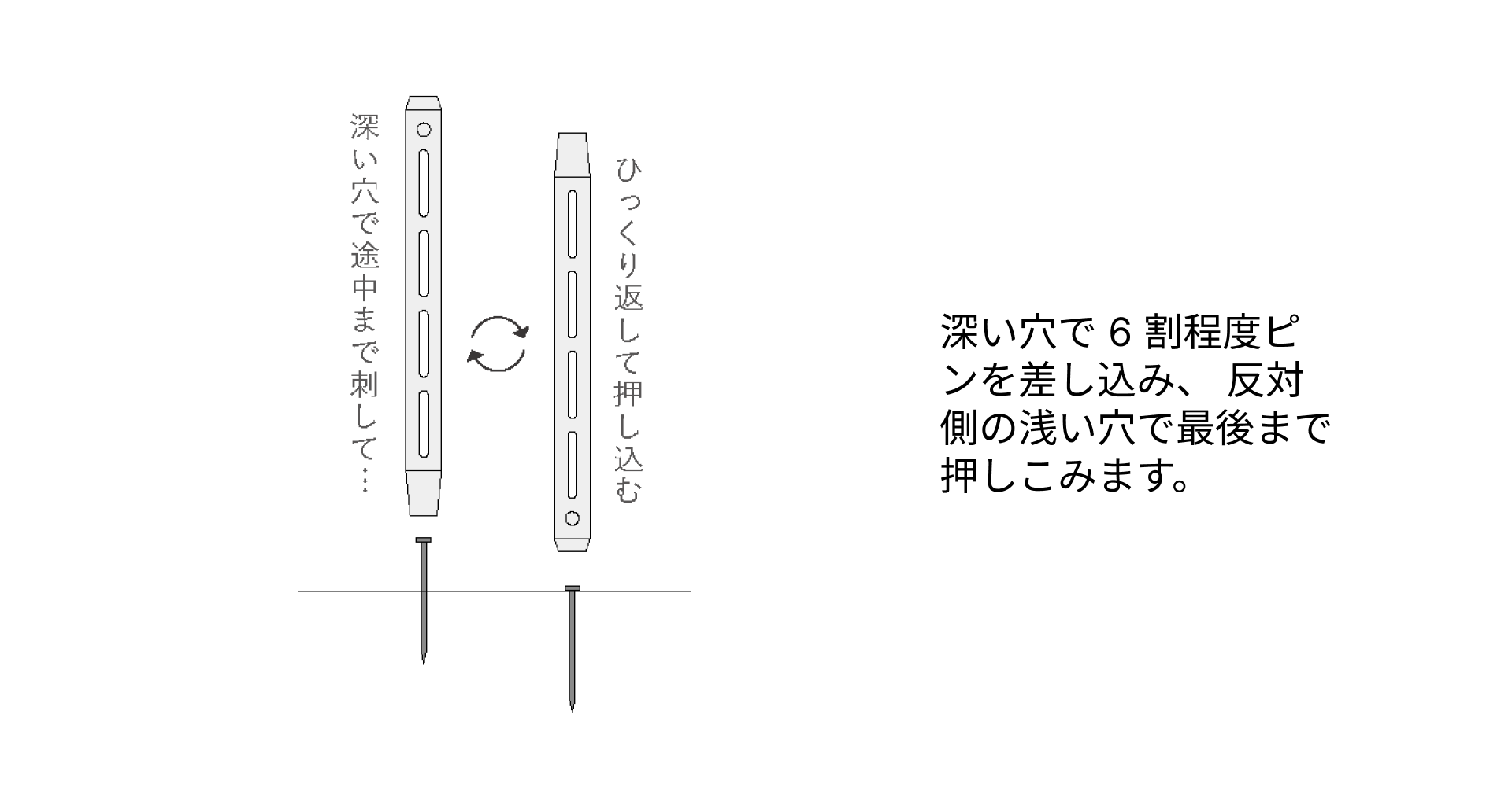 ・ピンはピンベースの穴全てに、最後まで刺してください。