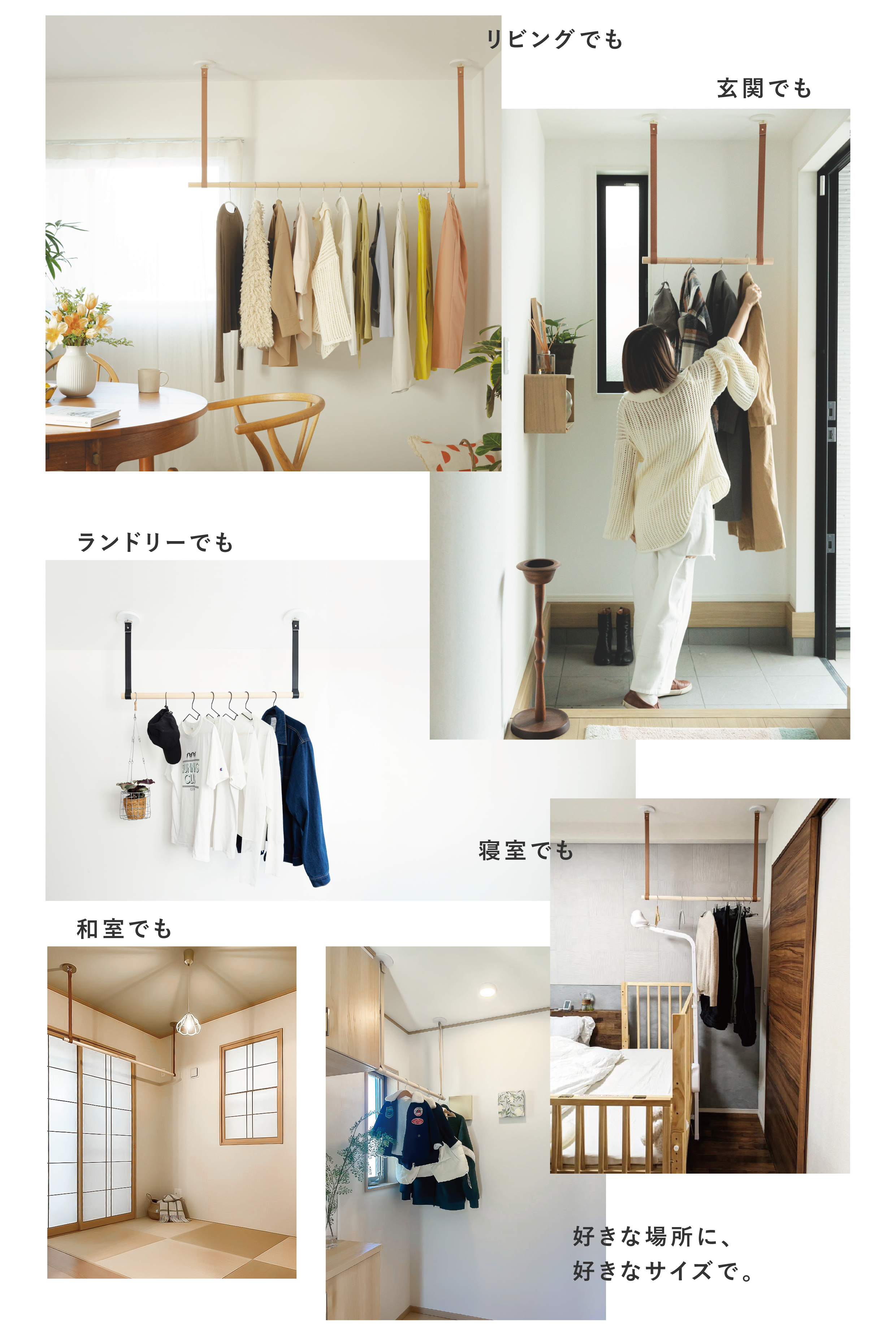 余白を活かしたミニマルデザインで北欧・韓国風・ナチュラルモダンなど幅広くフィット。 物干しを「隠す」ではなく「魅せる」選択肢として活用できます。 -