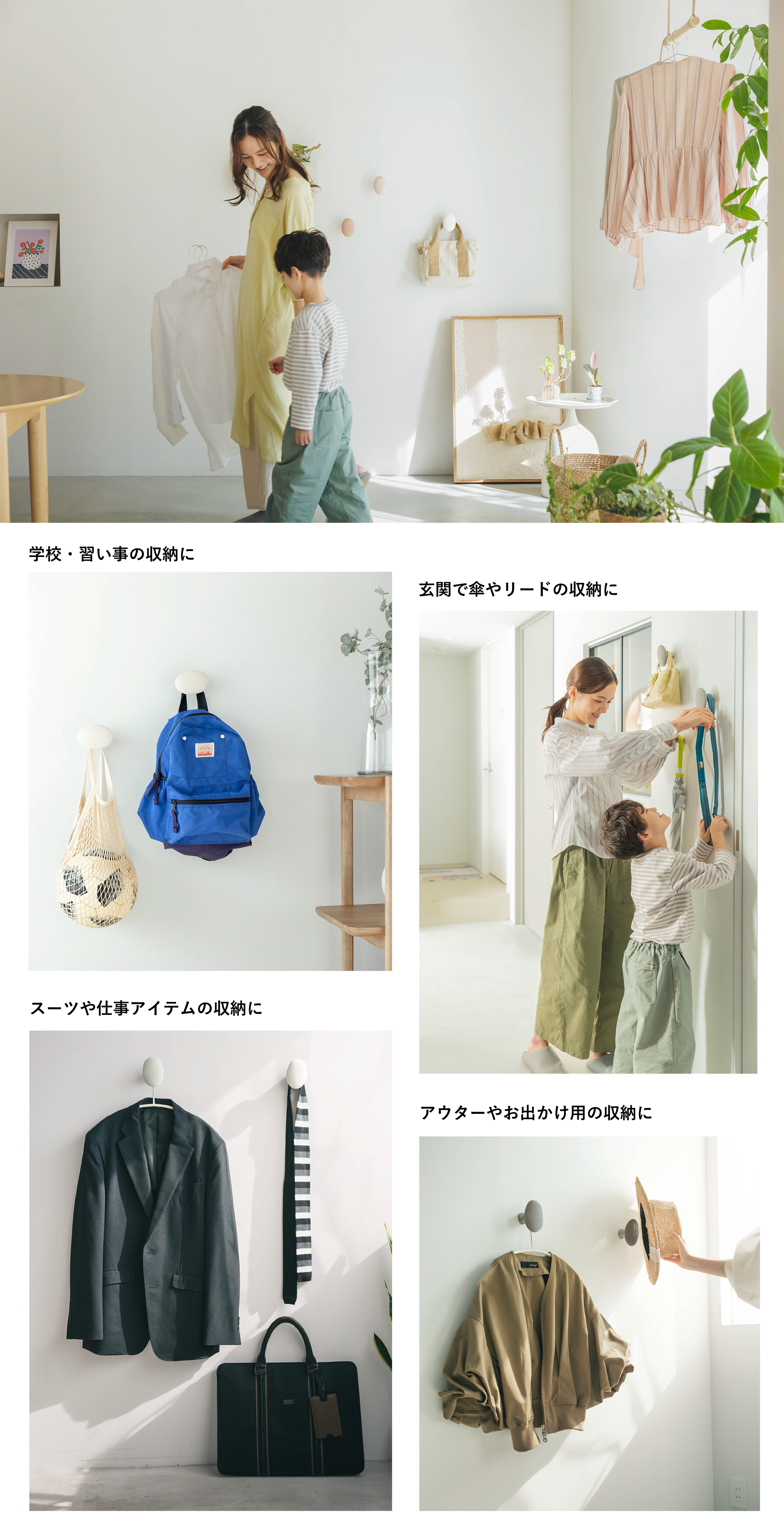 隠したい“フックの存在感”を、あえて見せたくなるようなデザインにいたしました。